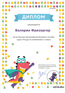 Рада сообщить, что Лера, Саша и Антон награждаются дипломами Учи.ру за успешное прохождение базового онлайн-курса по математике!